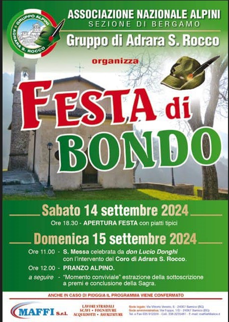 The Festa di Bondo will take place in Adrara San Rocco on Saturday 14th and Sunday 15th September 2024.