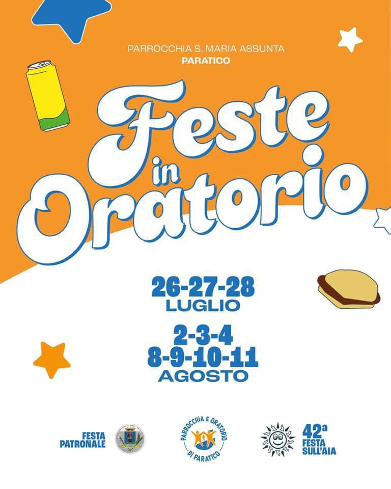 From Friday 2nd to Sunday 4th August and from Thursday 8th to Sunday 11th August the Oratory Festivities will be held in Paratico.