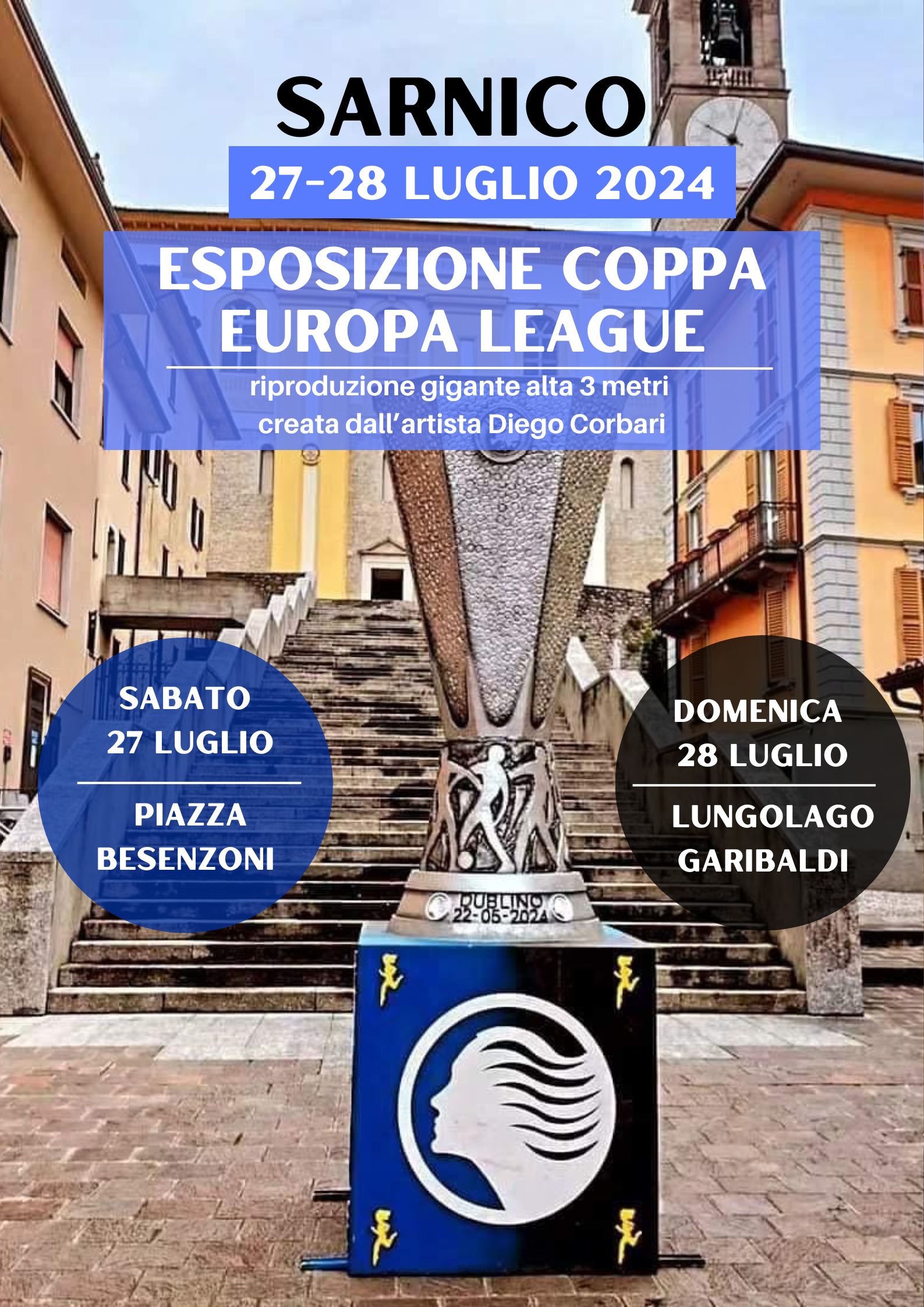 On Saturday 27th and Sunday 28th July, in Sarnico, there will be an exhibition of the giant reproduction, created by the artist Diego Corbari, of the Europa League Cup won by Atalanta in the final against Bayer Leverkusen.