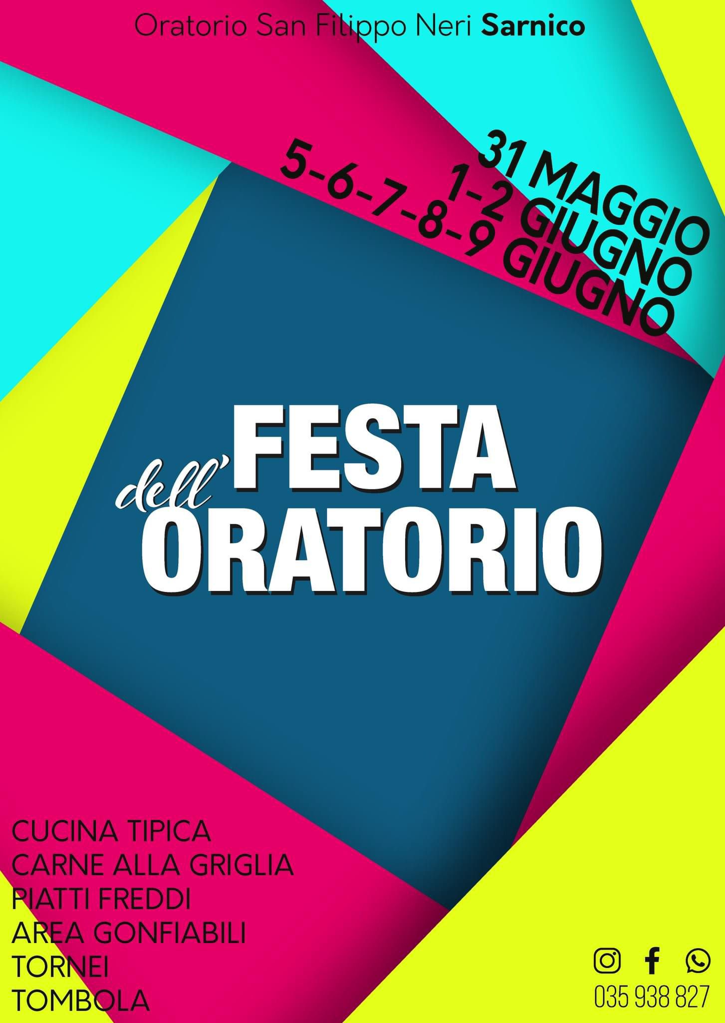From 31st May to 2nd June and from 5th to 9th June 2024, the FESTIVAL OF THE ORATORY returns to Sarnico, at the San Filippo Neri Oratory.