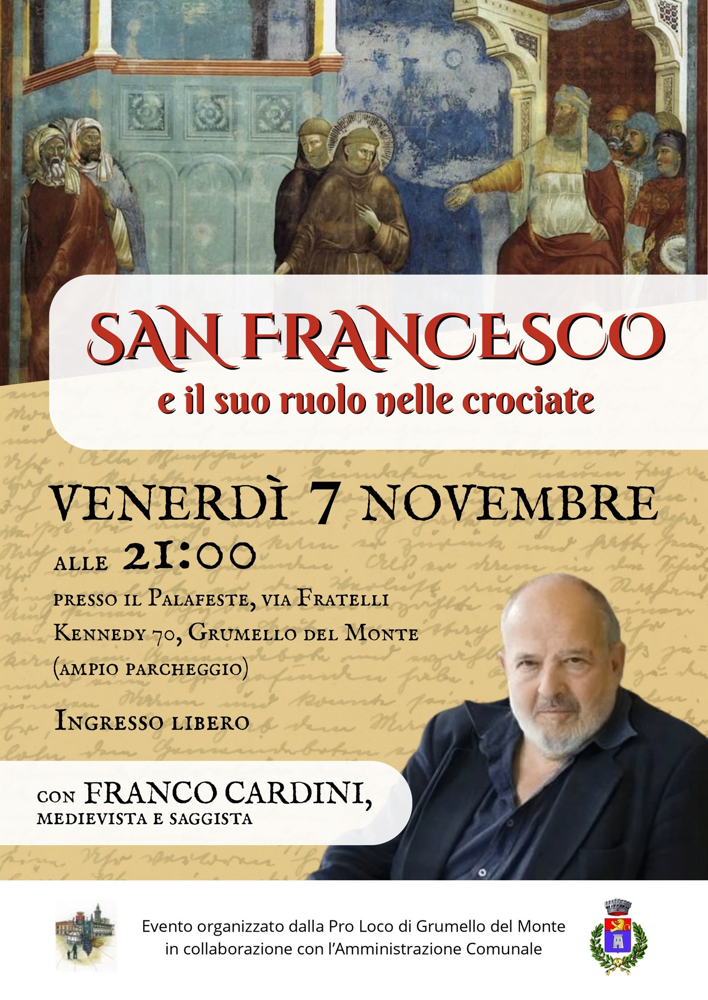 On Friday, November 7th, at 9:00 pm, the meeting "Saint Francis and His Role in the Crusades" will be held at the Palafeste in Grumello del Monte.