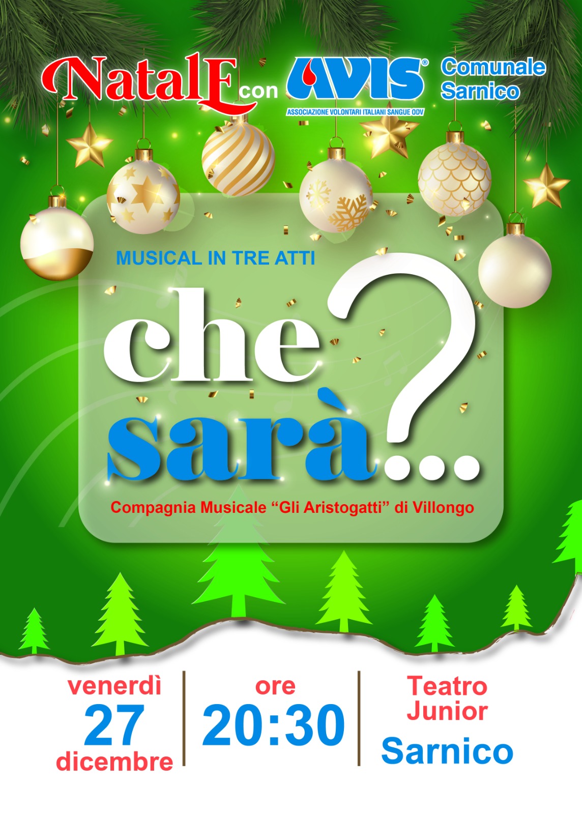 On Friday December 27th 2024, at 8:30 p.m., the Musical Company ‘Gli Aristogatti’ of Villongo will stage the musical in three acts ‘Che sarà…?‘ at the Teatro Junior in Sarnico.