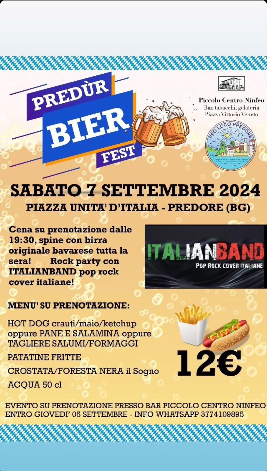 Saturday September 7th 2024, the Predùr BierFest will be held in Piazza Unità d’Italia in Predore.