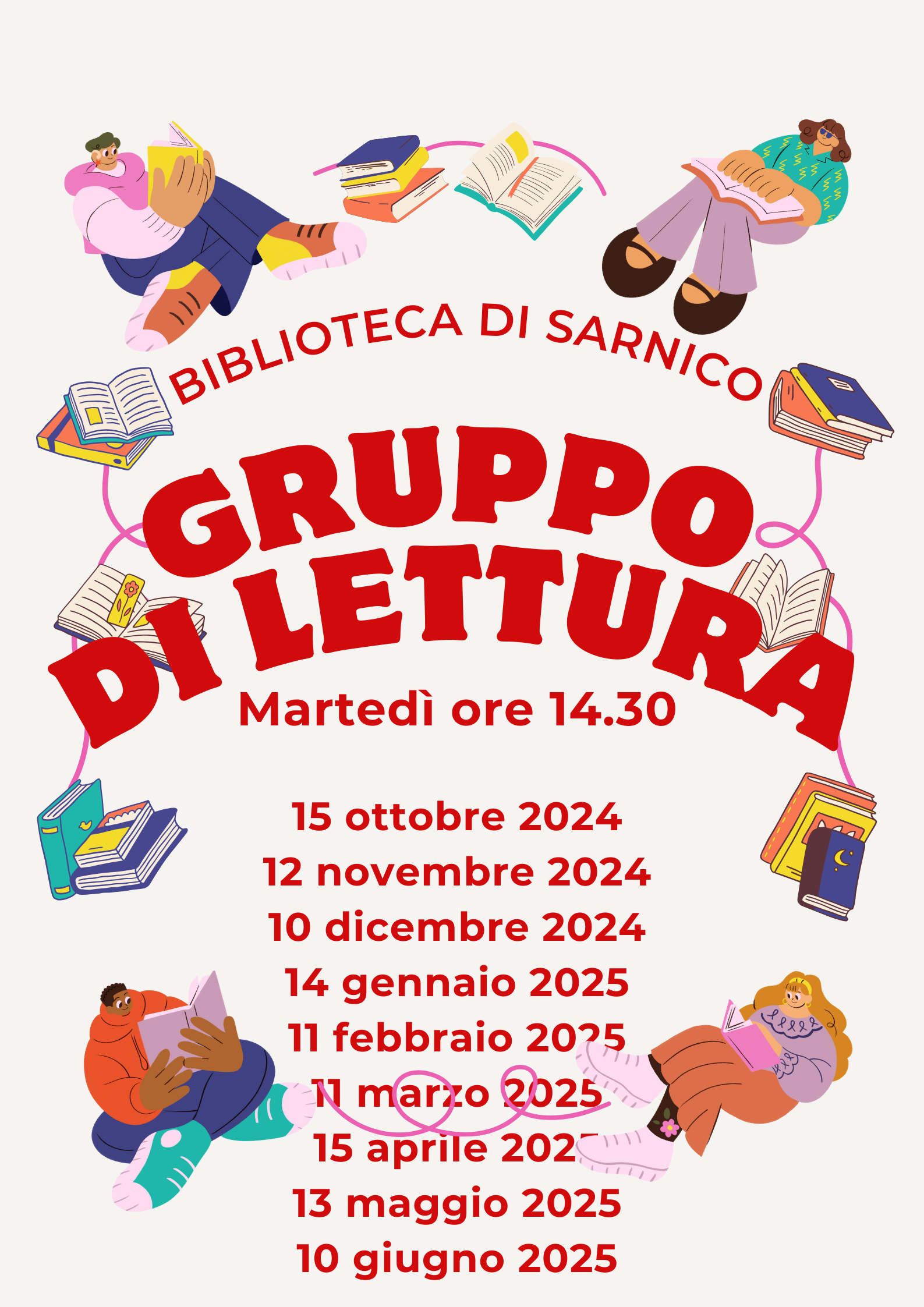 On Tuesday, October 15th, at 2:30 p.m., the Reading Group will start again at the Sarnico Library.