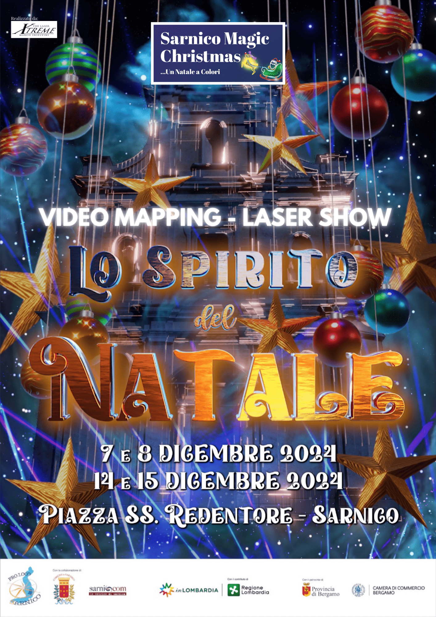 On the occasion of Sarnico Magic Christmas, on Saturday 7th and Sunday 8th December, it will be possible to admire the Video Mapping/Laser Show “The Spirit of Christmas” that will animate the facade of the Parish Church in Piazza SS. Redentore in Sarnico.