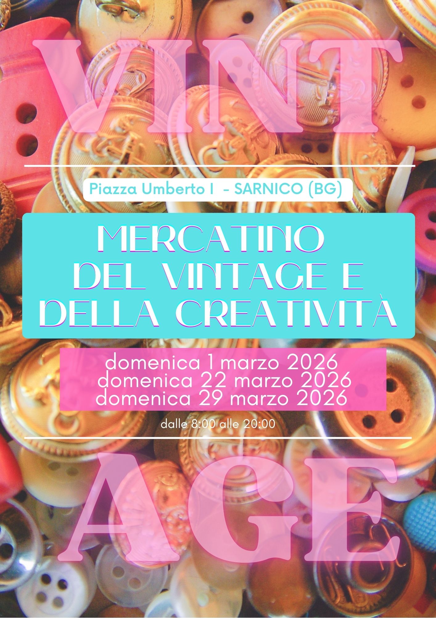 Domenica 1 marzo, in Piazza Umberto I a Sarnico, si terrà il MERCATINO DEL VINTAGE E DELLA CREATIVITÀ.