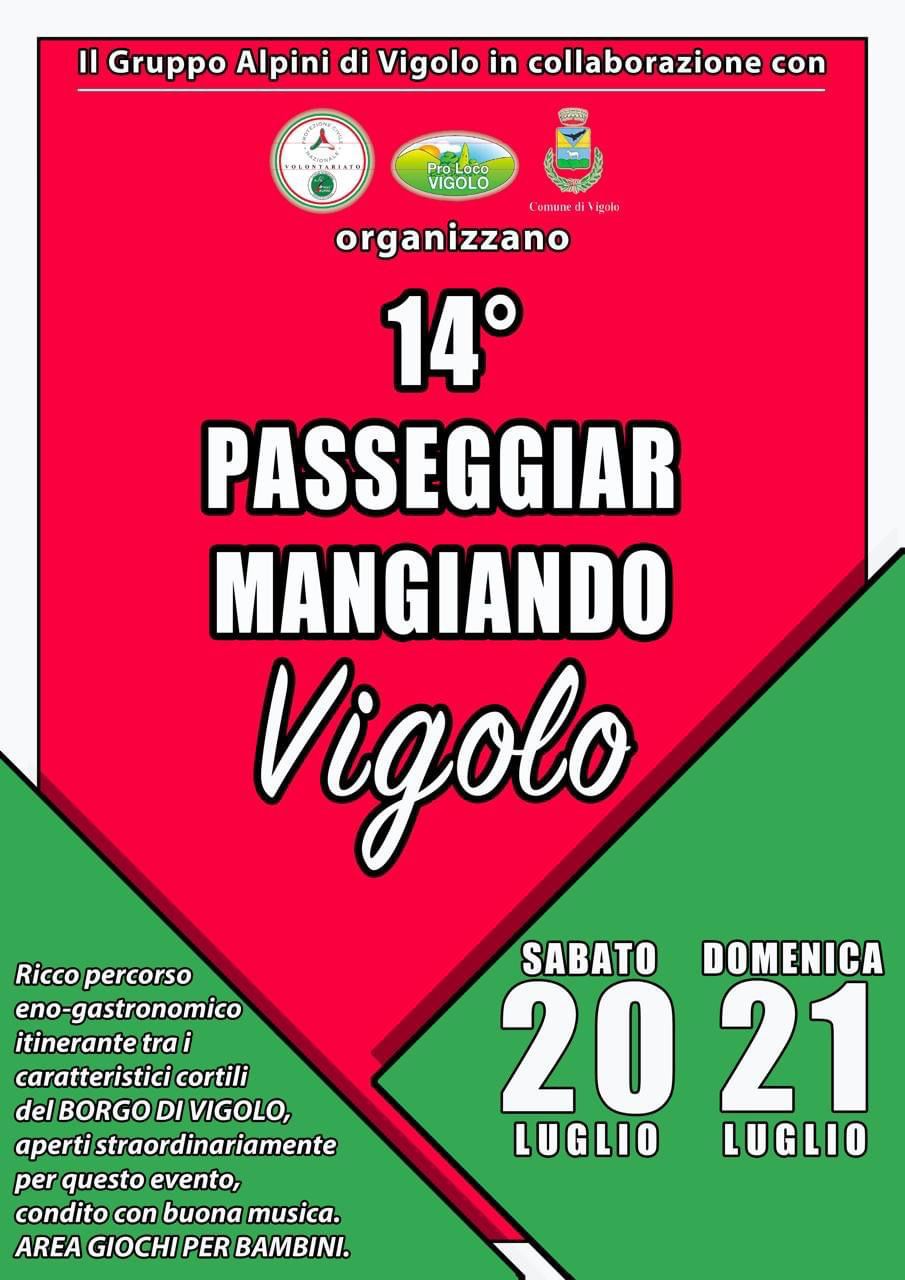Sabato 20 e domenica 21 luglio si terrà la 14° edizione di “Passeggiar Mangiando“, ricco percorso eno-gastronomico itinerante tra i caratteristici cortili del Borgo di Vigolo, aperti straordinariamente per questo evento, condito di buona musica e area giochi per bambini.
