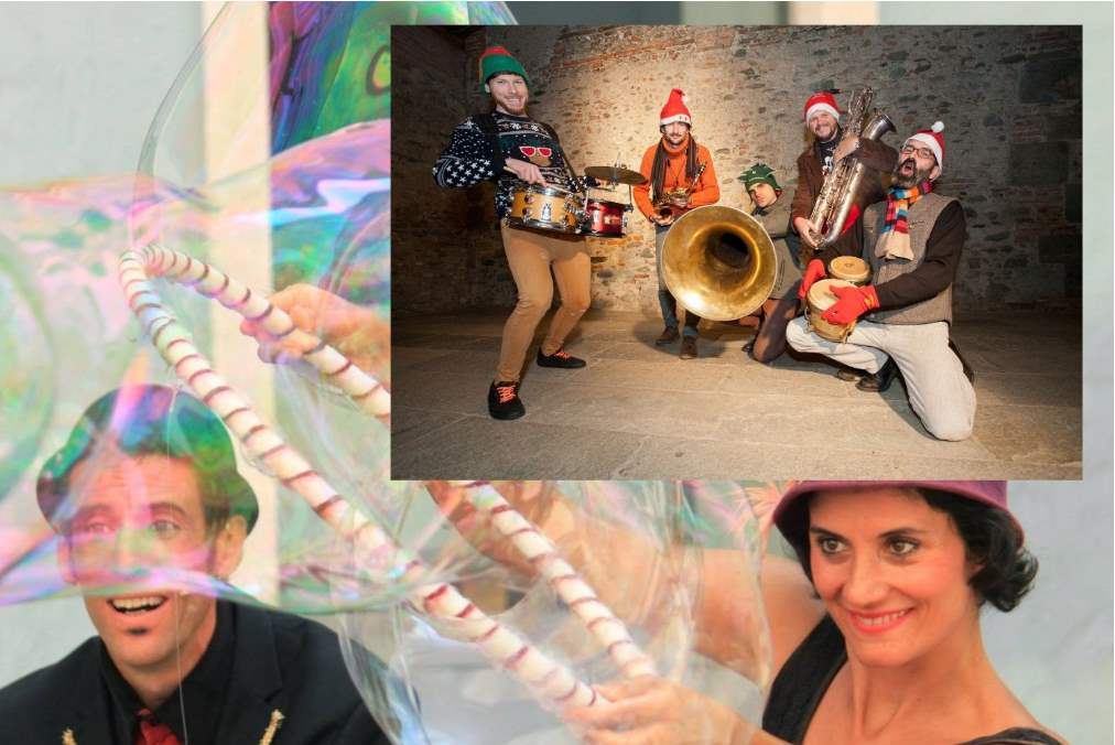 Nell’ambito dell’evento “Sarnico Magic Christmas….dove i Sogni diventano realtà”, domenica 21 dicembre 2025, dalle 15:30 alle 18:00, nel Centro Storico e sul Lungolago Garibaldi di Sarnico, si terrà un pomeriggio di musica e divertimento con la Street Band Brassato Drum, in compagnia delle Magiche Bolle di Bubble On Circus.