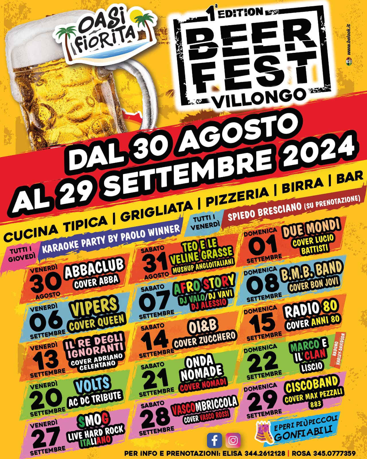 In occasione della 1ª edizione della Beer Fest Villongo, domenica 29 settembre, si terrà il Raduno delle Bande del Basso Sebino nell’area feste adiacente il ristorante Oasi Fiorita di Villongo (Via Gennaro Sora, 14).